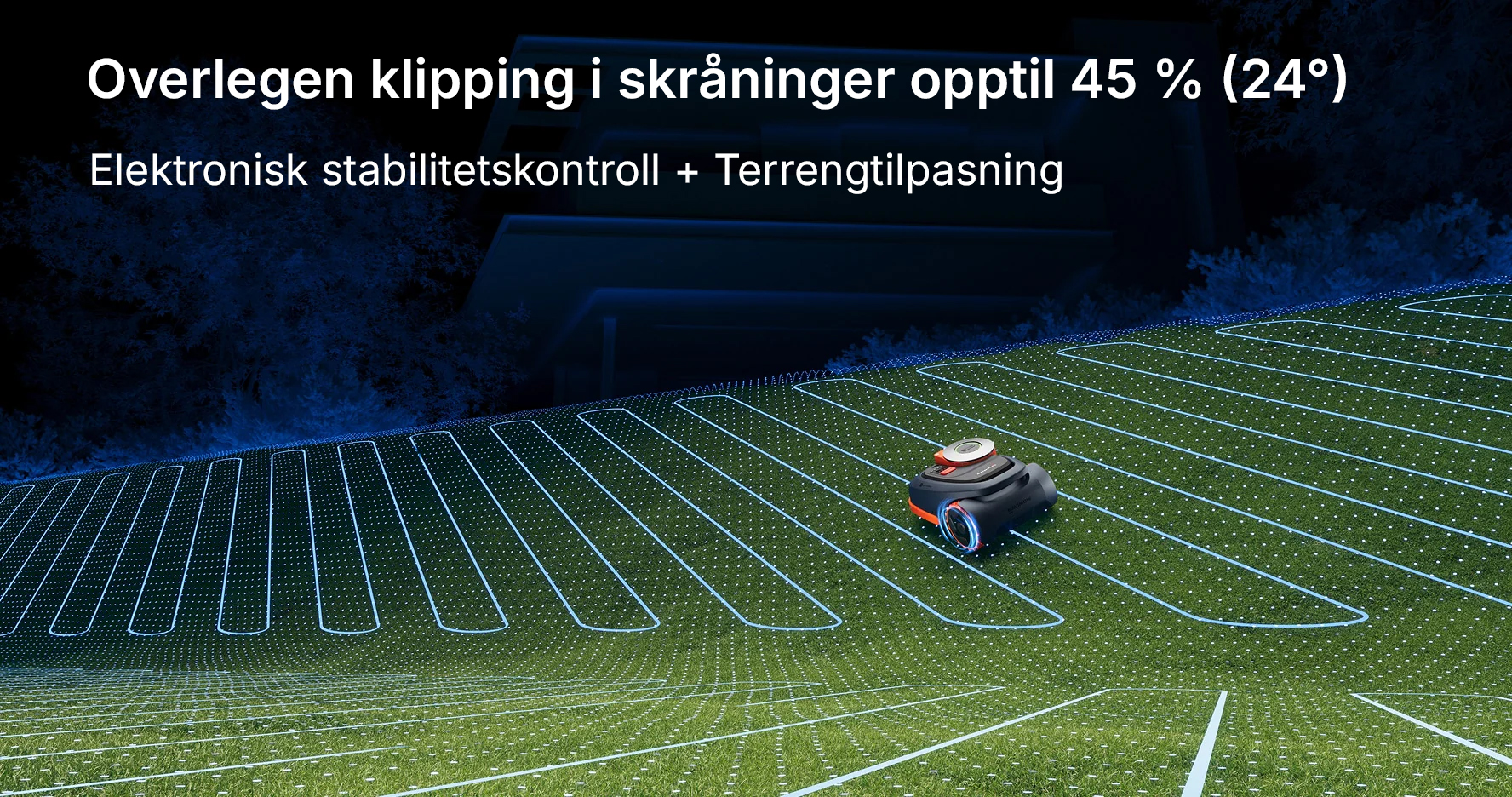 H2-serien utmerker seg med et AI-basert trippel-fusjonssystem som utfører høypresisjons skanning av plenen. Den navigerer enkelt i komplekse situasjoner som smale passasjer og områder under store trær, og leverer samtidig enda bedre ytelse på relativt flate og åpne plener.